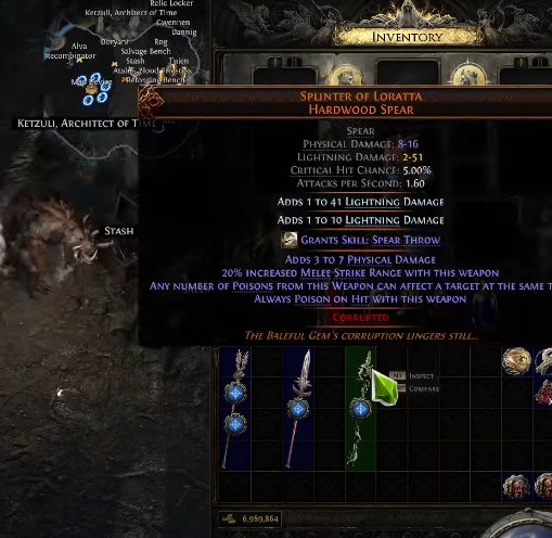 Level 1–16: Splinter of Loratta (Corruption: +Lightning Damage ideal)