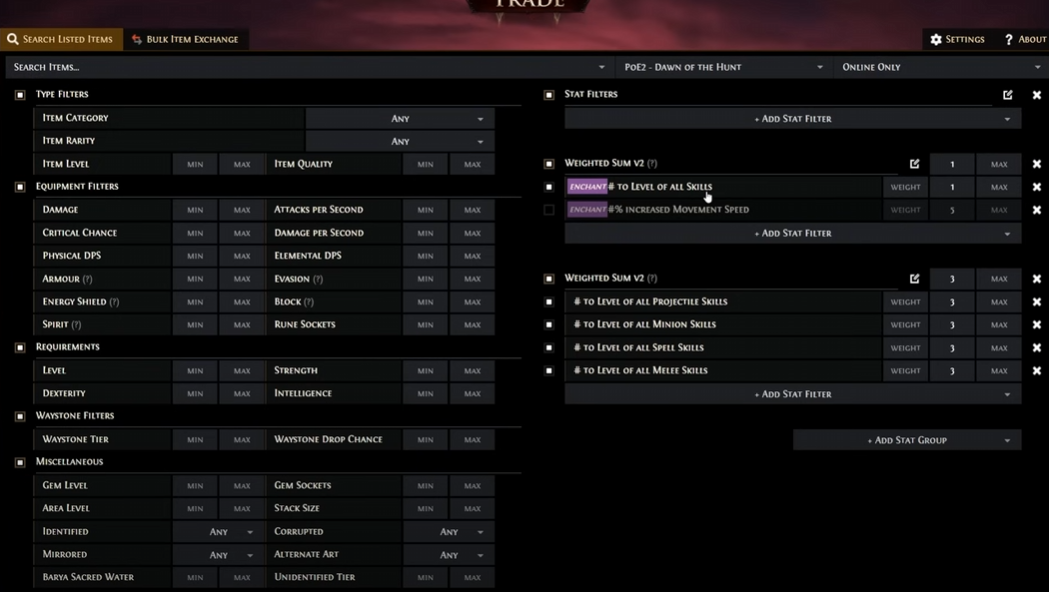 By mastering the weighted sum filter, you can quickly zero in on the highest quality gear that meets your exact requirements without sifting through endless search results, making trading and crafting in PoE 2 much more efficient and rewarding.