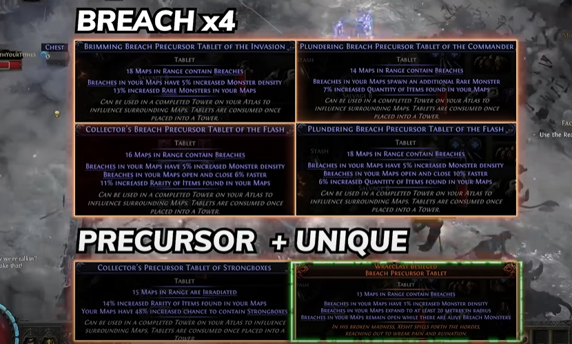 I used Distilled Paranoia in all maps to increase rares and ran two towers and six tablets, with one tablet always being a Breach for more monsters.