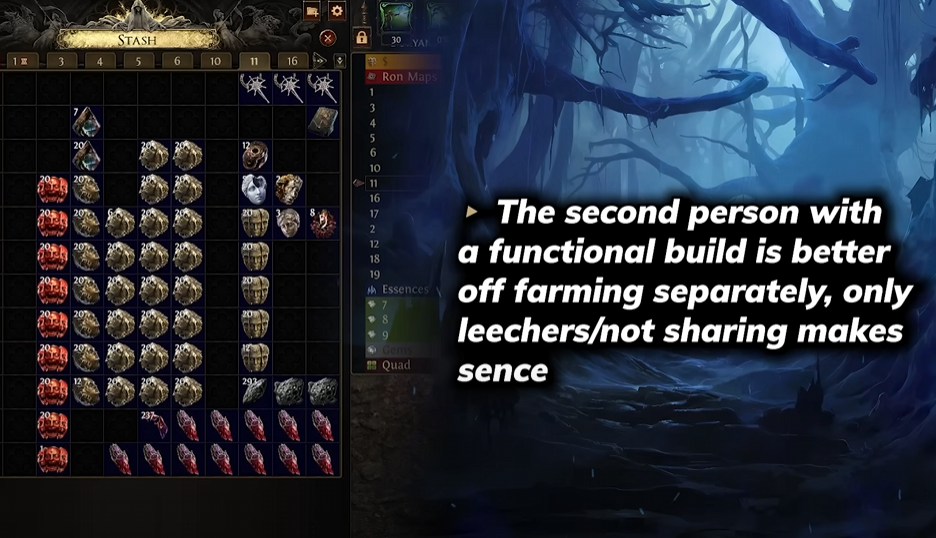 So if you’re playing as equals, 50/50 split on the loot, you’re likely leaving PoE 2 currency on the table by duoing.